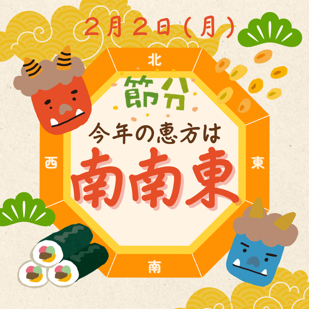 🌟 2026年の節分の恵方は「南南東やや南」 🌟